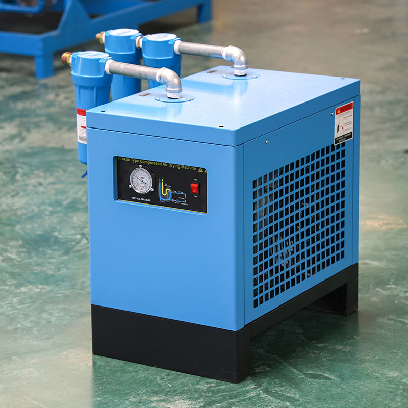 Refrigerated dryer, the main role is to remove the water in compressed air, to ensure the normal operation of air-using equipment and product quality. It reduces the temperature of compressed air through refrigeration technology, so that the water vapour condenses into liquid water, and then discharged, so as to achieve the purpose of drying compressed air.
